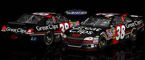 Kasey Kahnes #38 Great Clips car. It has ratings based off of an