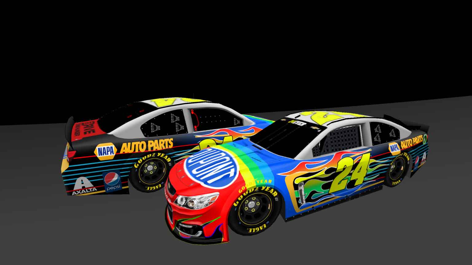 Here is a mashup of the 24 car's iconic paint schemes. Logos and the number from Google, template from BER, everything else by me (sry I didn't include credits initially, I just joined the site)